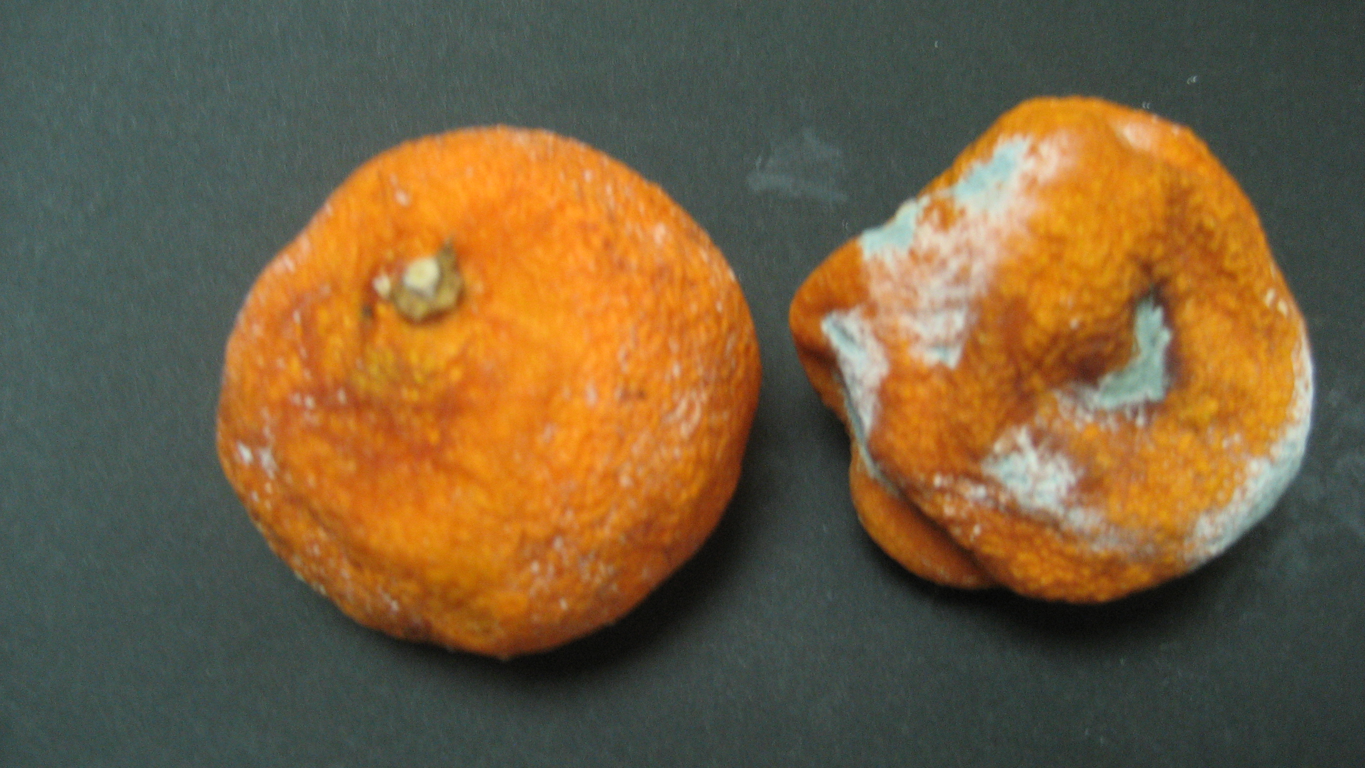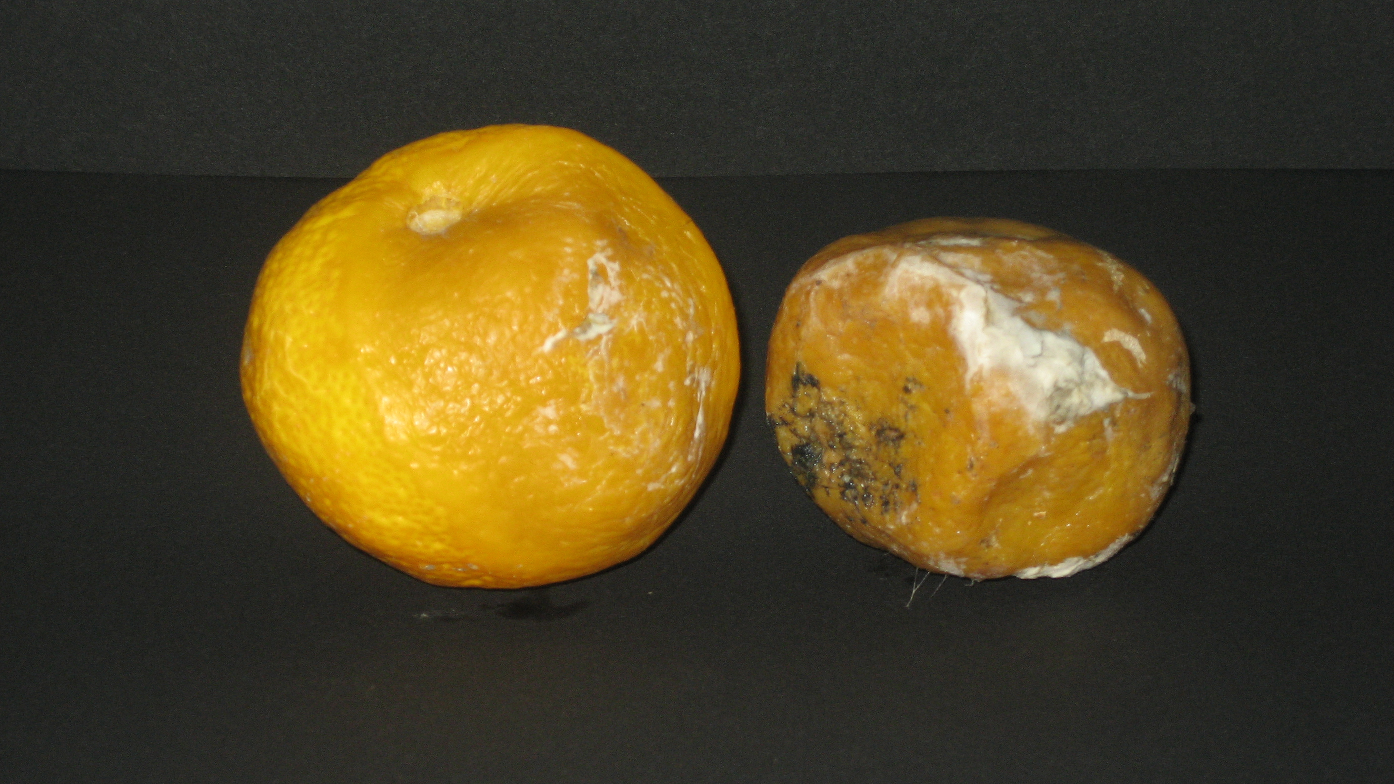 ゆずを常温25度で「E&S」を噴霧したもの(左側)と何も噴霧しない自然放置(右側)の検証です。