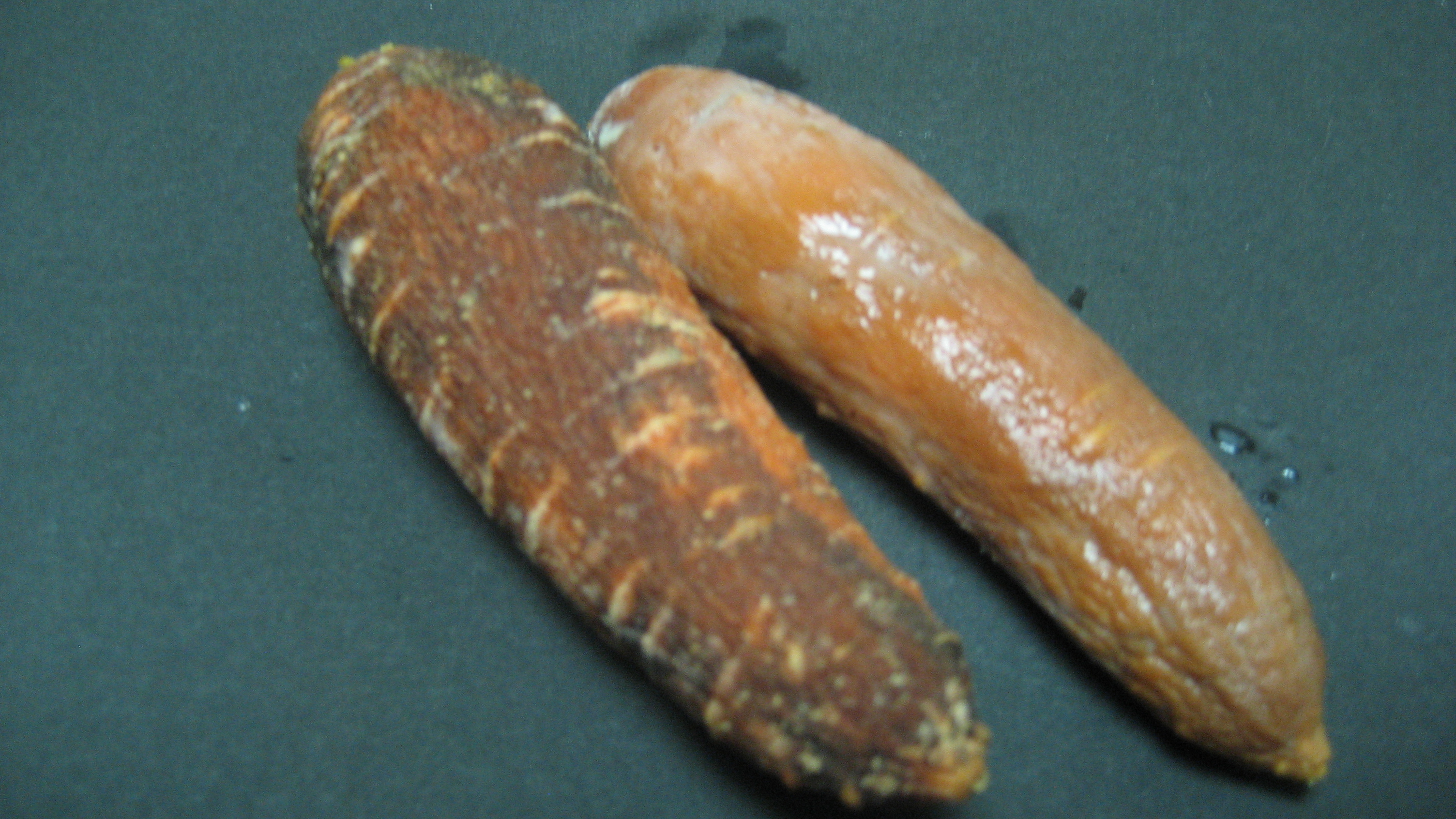 常温25度で冷蔵庫には入れず「E&S」噴霧(右側)無噴霧(左側)の腐食状況。