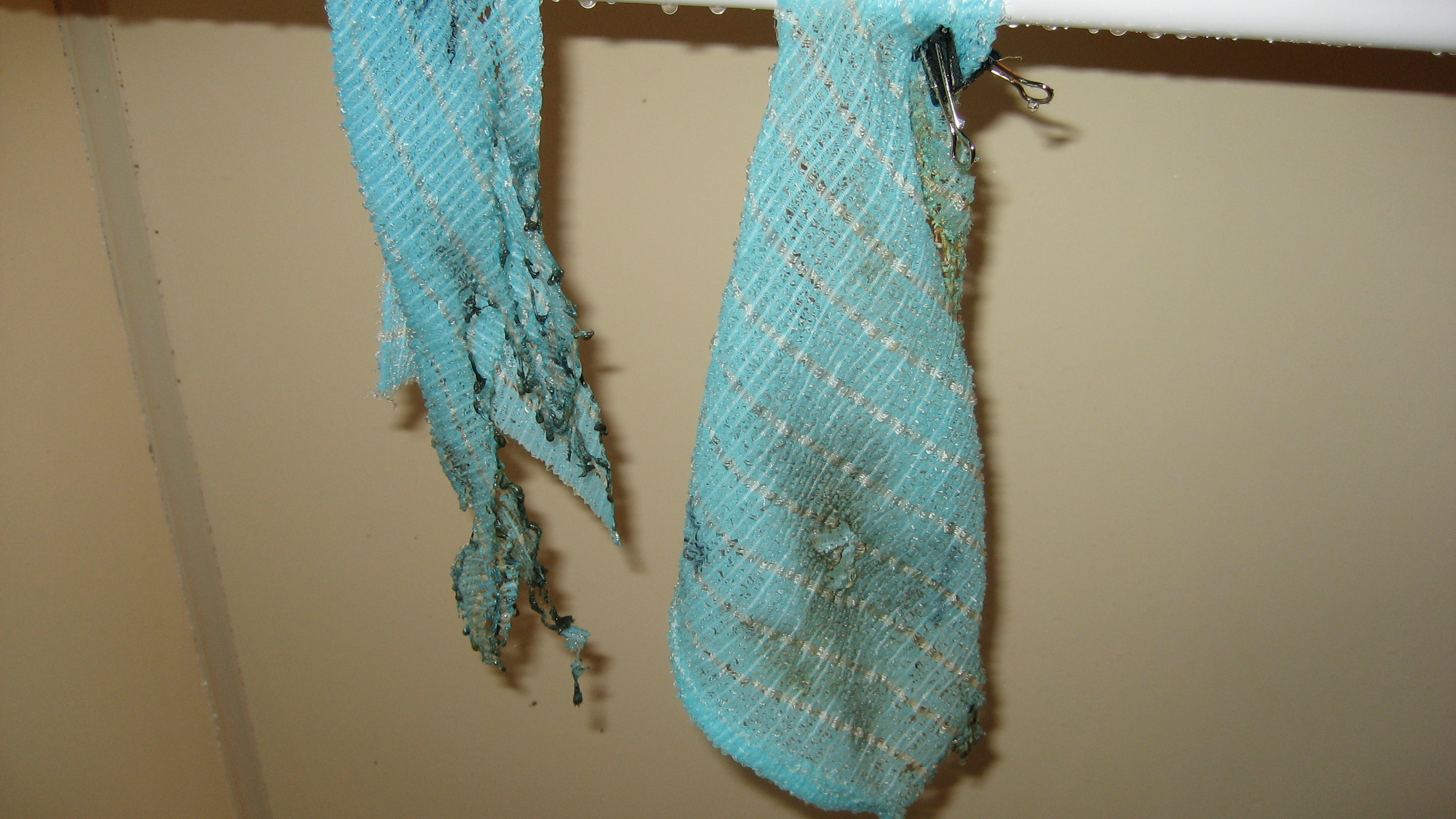 常温25度の空間にビニールへ入れたまま「E&S」を噴霧(右側)無噴霧(左側)…密封状態で細菌は繁殖する。